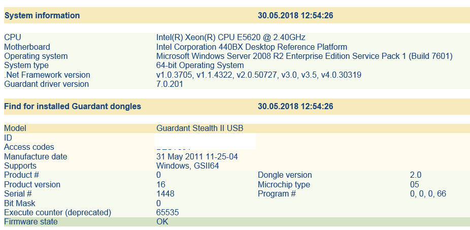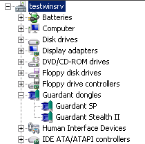 На сервере сетевых ключей отображаются только сетевые ключи. Ключ Guardant Stealth II не является сетевым.