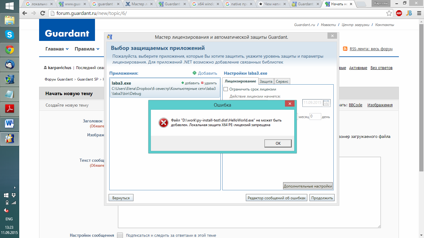 Тема: Ошибка в мастере лицензирования при выборе защищаемого приложения
