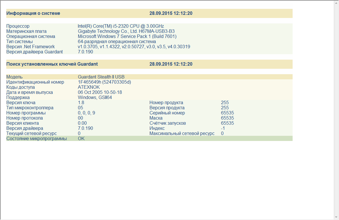 Установили драйвер ключа 64 разрядный с guardant.ru версия 7.0.190, ключ, вроде бы, подхватывается: светодиод загорается, приходит сообщение о том что устройство функционирует нормально, НО защищаемое приложение не видит ключ ни локально, ни через сеть. Пробовал запускать при отключенном антивирусе и брандмауэре (DrWeb) - результат тот же. В чем может быть подвох? Может необходимо обновить сам ключ для 64-разрядных систем?